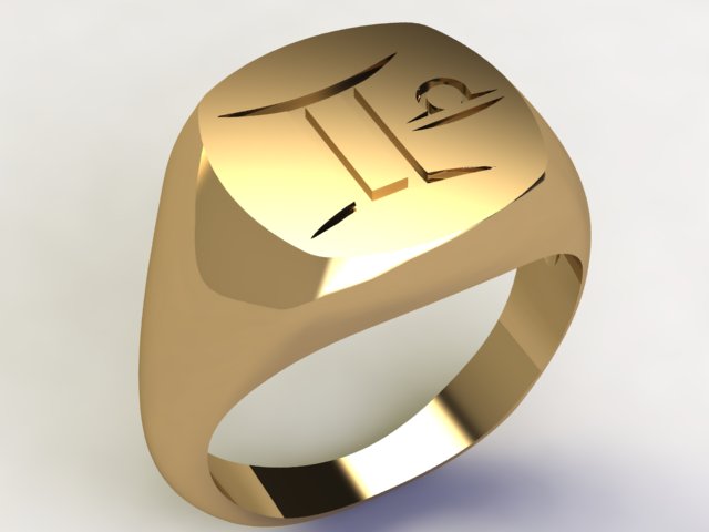 18k Gold Gemini Zodiac Ring with Libra Ascendant