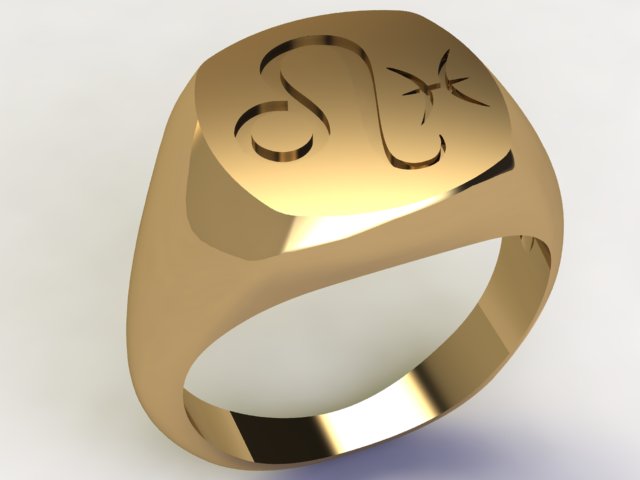 Leo Zodiac Ring with Pisces Ascendant in 9k Gold